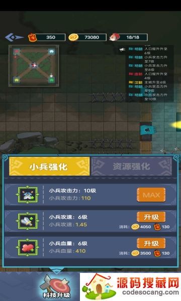 10.把小兵攻击力和小兵血量升到4级,前面这样打好基础,注意主升级小兵强化里的,后面小伙伴们就能自由发挥了。