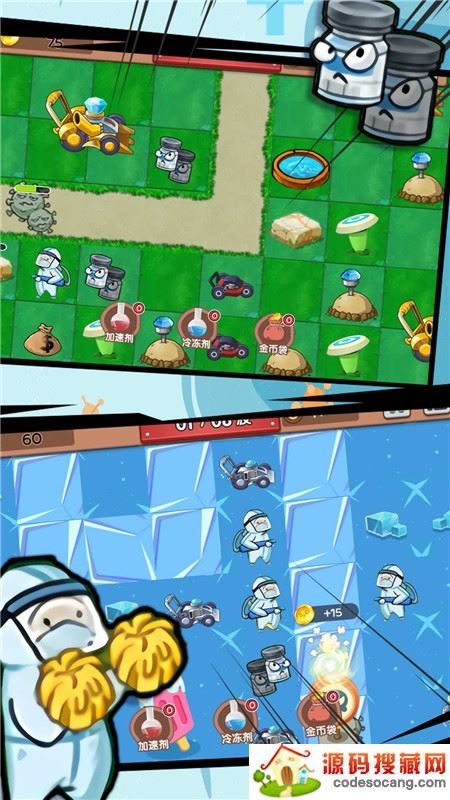 2、解锁防疫英雄,积极的进行防御,加固基地,去阻止病毒;