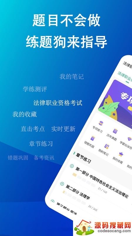 法考练题狗涵盖智能题库、学霸加油包等多种助考随身学功能,解决司法考试刷题、听课各大需求,高效学习备考,比看书节省时间,帮助您在考试路上省时省力,考试通过,一练之间。