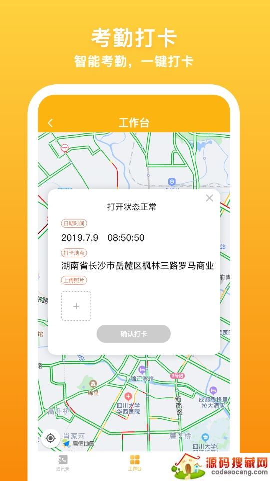 ·支持图片打卡,当自己进行上下班的打卡之后可以顺带上传自己上班与下班地方的图片;