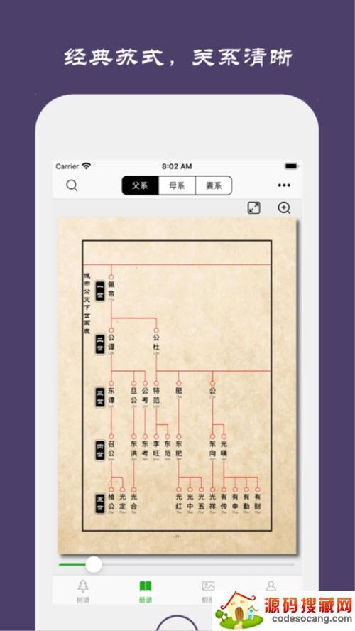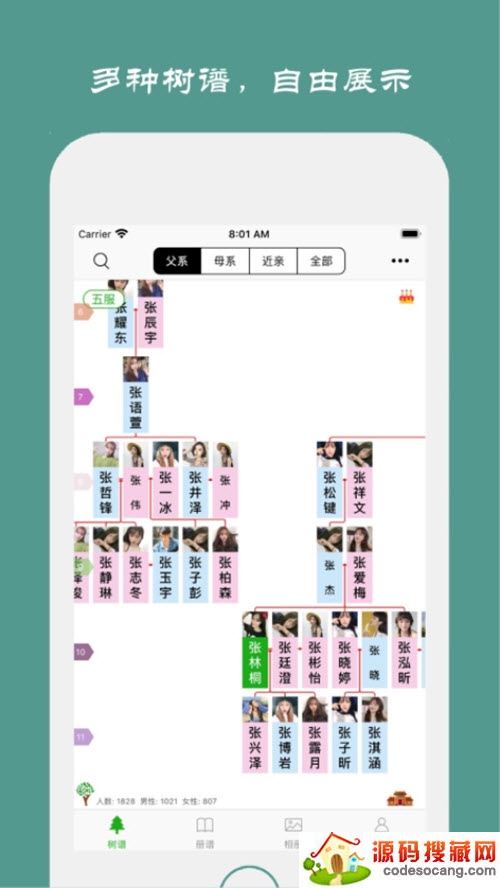 三种家族树。完美的家族树展示,独创称谓自动计算功能,让您可以清晰的查看五服内所有的关系脉络。"父系""母系"家族树完美的展示了具有共同祖先的所有子孙。