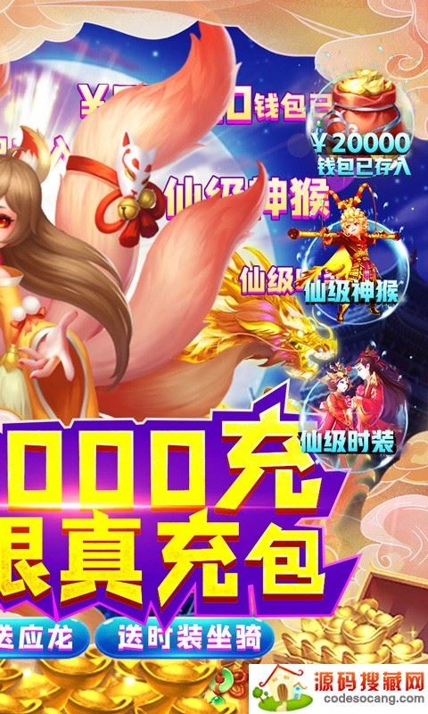 2、升级送顶级仙灵应龙、送2万真充 、无限真充礼包。