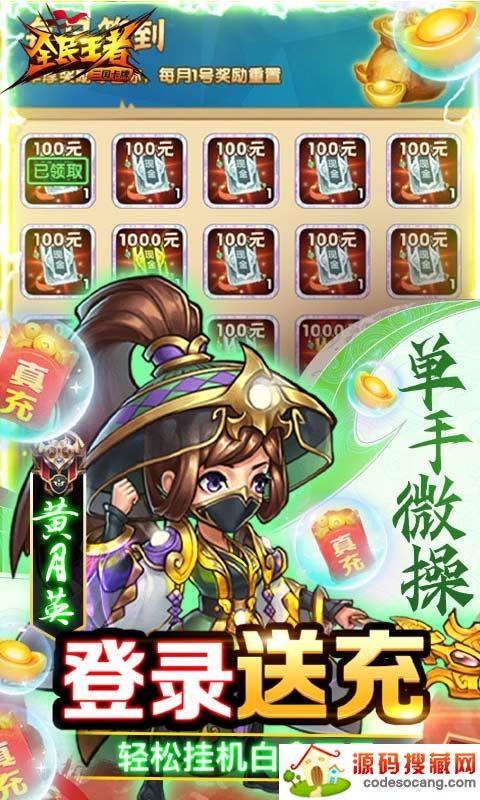 ★签到30天领12600元真充卡,在线30天领21000元真充卡,活跃领万元真充卡,闯关任务更有海量真充卡,白拿万元奖励,轻松称霸三国!