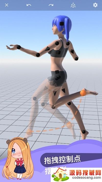 - 拖拽人偶上的控制点摆造型。我们的物理引擎允许您像真正的素体人偶一样操纵3D人偶模型,并自动将其调整为您想要的动态姿势。