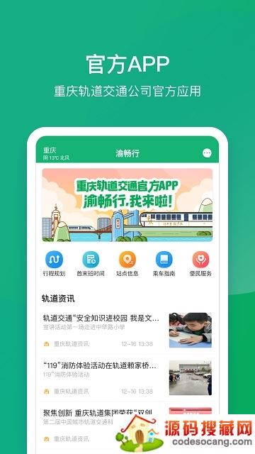 渝畅行是重庆轨道交通官方APP,为你提供扫码乘车、站点导航、换乘方案、失物招领等全方位出行服务。渝畅行,畅行重庆,巴适生活!