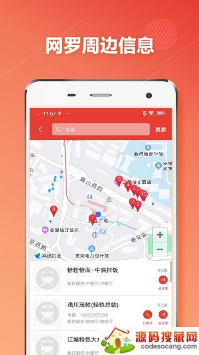 2、在网站周围,你可以查询吃、喝、玩的信息,一键导航,让每个人都能过上无忧无虑的生活