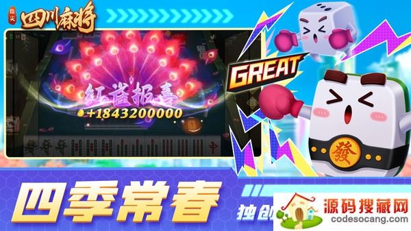 正宗真人川麻对战,网红大V强力推荐,四季常春爽不停! 全新胡牌特效,百变装扮上线!快来跟网红大V一起玩! 指尖四川麻将带给你全新3D棋牌竞技新体验,集合全国麻将玩法,四季常春,血流红中,广东100张,推倒胡,真人2v2,血流换三张,贵阳捉鸡,武汉麻将,多种玩法包围你的麻将选择!更有麻将排位赛,与全国高手切磋牌技,点燃你的竞技小宇宙!