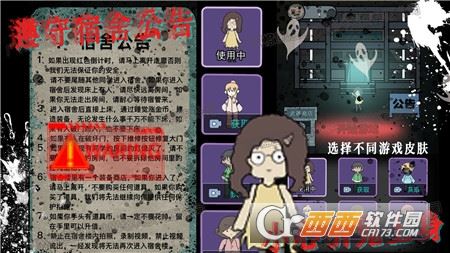 2、听说校舍楼道外有猛鬼出没,勇敢的你根本不怕,直接在床上躺平发育,累积无限金币!