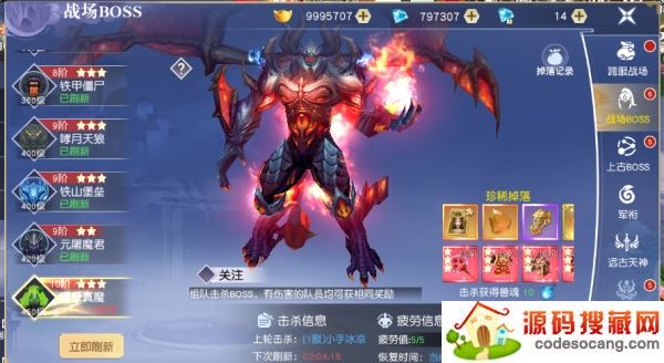 跨服战场每天0点5分之后会刷新战场内所有BOSS,相邻服务器玩家均可进入挑战获取各种丰富奖励,场面会比较血腥,所以仙友们记得叫上帮派的小伙伴一起哦~
