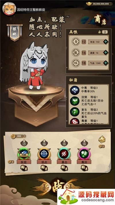 来江湖打擂台,打造自己独一无二的流派,击败对手吧~