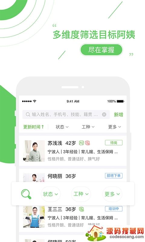通过工种、技能、姓名、生肖、上工时间偏好等维度定位自己的阿姨,