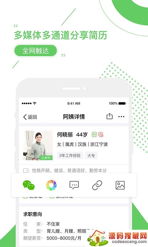 可以将简历通过微信好友、朋友圈、短信、链接、长图等形式分享给朋友、客户