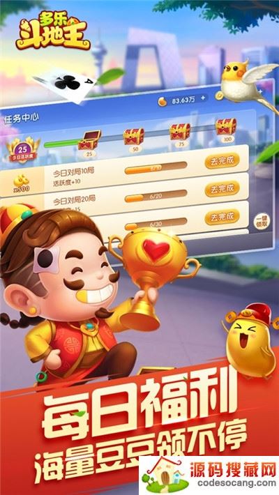 每日福利、游戏任务、救济金送不停,斗地主再也不担心没豆啦!