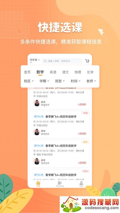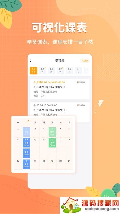 3、课程分类:根据日期分类,每天上课的课程都一目了然,可以准确的带好书籍;