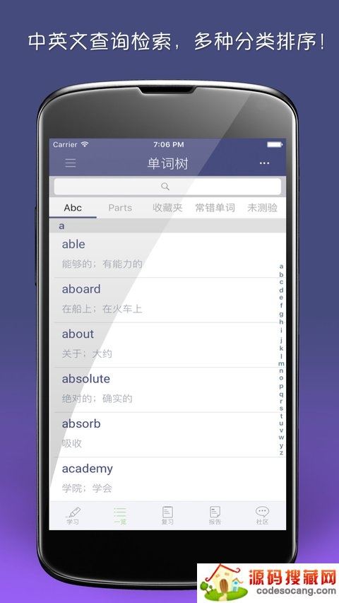 此功能主要包含了所有短语及单词的一览,检索和收藏;