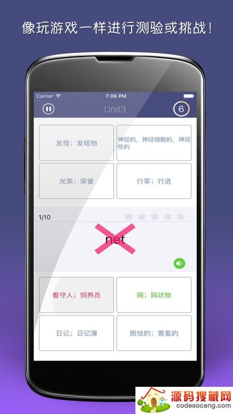 挑战模式,只听单词发音,从8个选项中快速回答,非常刺激,让你的心跳瞬间加速!