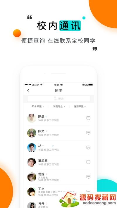 可以找到全校同学的校内通讯录,按院系、年级、学号查找,在线私信更方便
