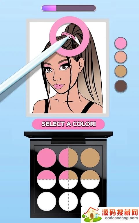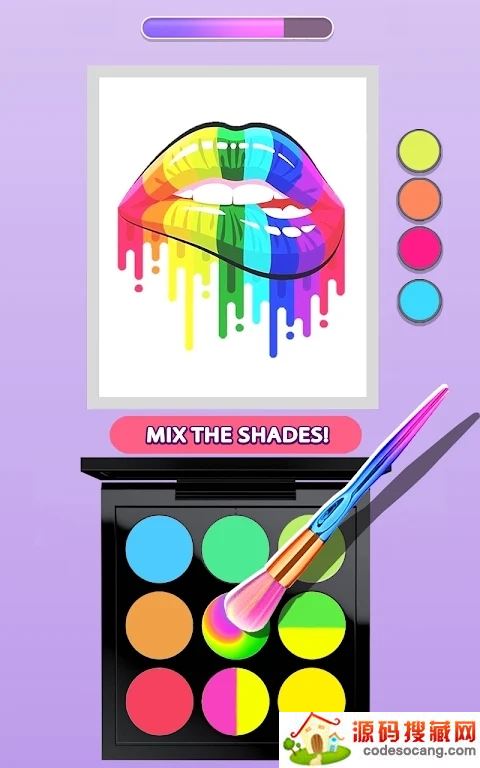 将经典的涂色玩法与模拟体验相结合,游戏以图画上的配色为底色,用其调配出让自己心仪的眼影盘,定制靓丽的化妆品
