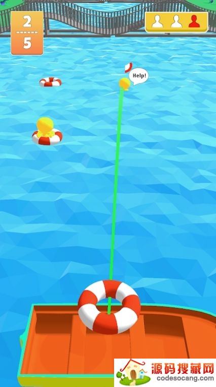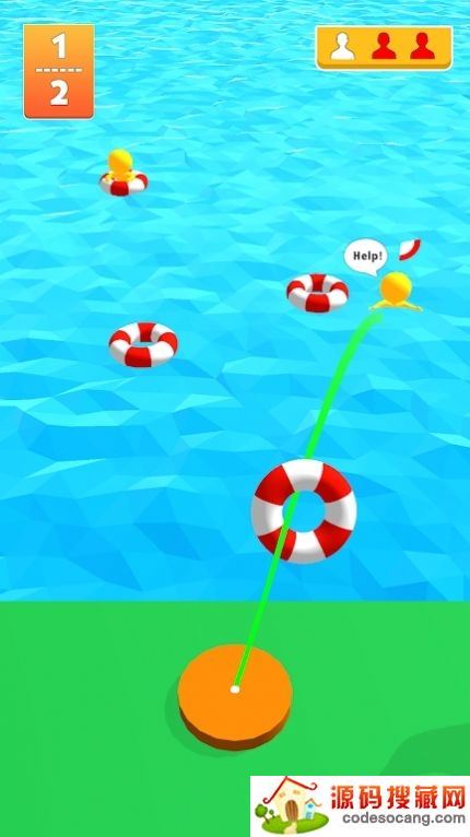 2、我们将要扮演救生员,通过投掷游泳圈来拯救溺水的人;