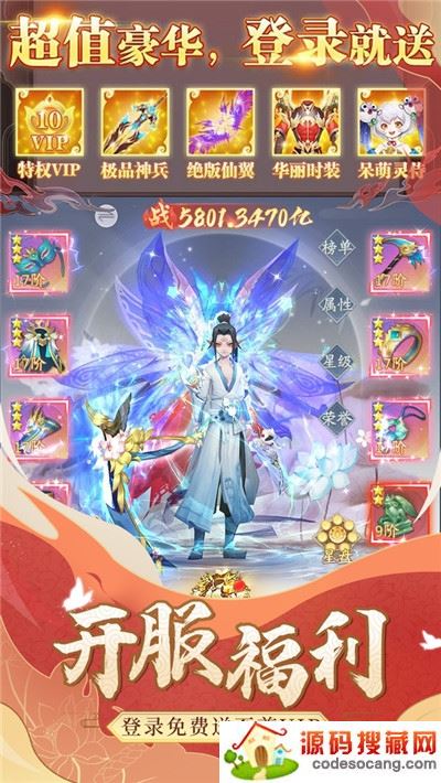 休闲娱乐挂个机,修仙壕礼送不停,这里的极品神兵、海量元宝、绝版仙翼、奢华时装统统免费领,升级还送VIP!