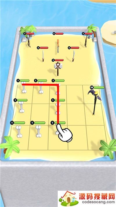 在战场上炫耀你的武器,合并两个相似的单位来升级你的武器。