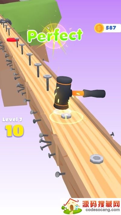 1、玩家可以在适当的时候点击屏幕,放下锤子,敲击木板上的钉子;