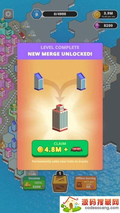城市融合一个很简单的合成小游戏,如何将一些茅草屋满满的变成城市里面的高楼大厦呢?