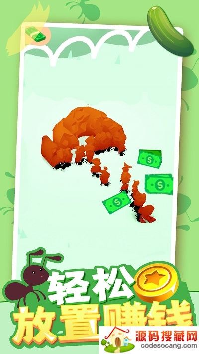 2.丰富的周边系统,你可以通过主界面的速度、数量、力量提升你的蚂蚁军团质量,让你的蚂蚁军团数量壮大,力量增强,速度提升!让你的军团脚步更加势不可挡!