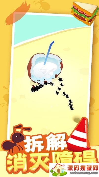 玩家将在产品中组建你的蚂蚁军团,拆掉所有挡在你面前的食物、建筑、物品!你可以通过升级属性,提升蚂蚁的速度、力量、与数量,让你的蚂蚁军团逐渐壮大起来,解锁更多的场景,消灭掉更多的食物!