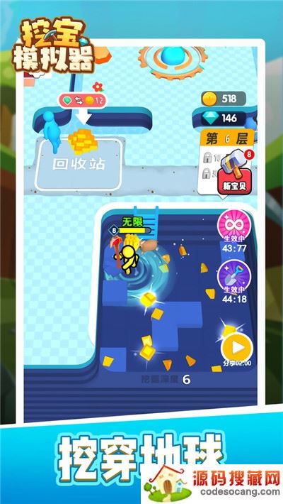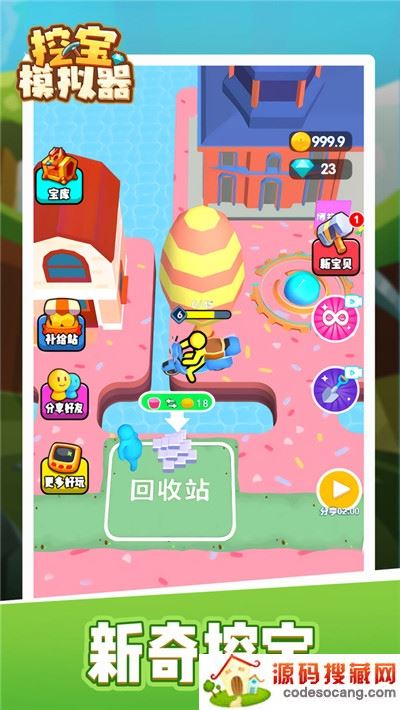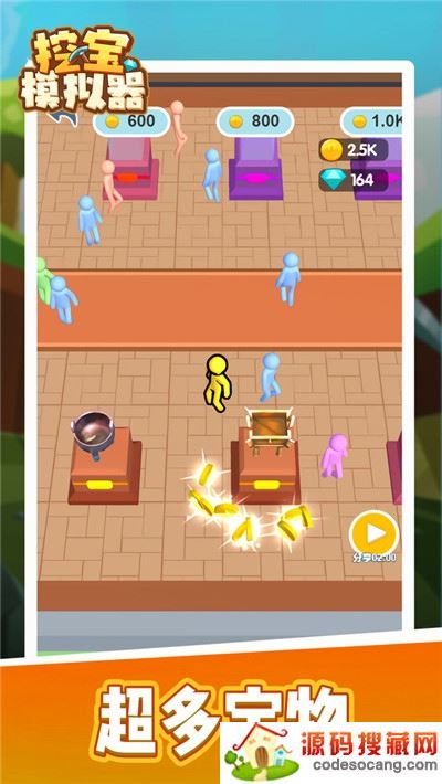 《挖宝模拟器》是一款轻松休闲有趣的挖土游戏,玩家需要扮演一名你宝藏寻找者,通过不断的挖掘你发现的目标地,寻找深埋在土中的宝藏,在游戏中,你可以通过货币雇佣工人协助你进行挖掘,提升你的挖掘效率,在挖掘地中你还可以挖掘到宝石、钻石等货币,可以帮助你去购买市场内的道具或者宠物!