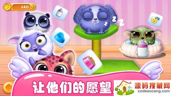 3、看着你的虚拟宠物成长,给可爱的小动物洗澡,累了就照顾它们睡觉。