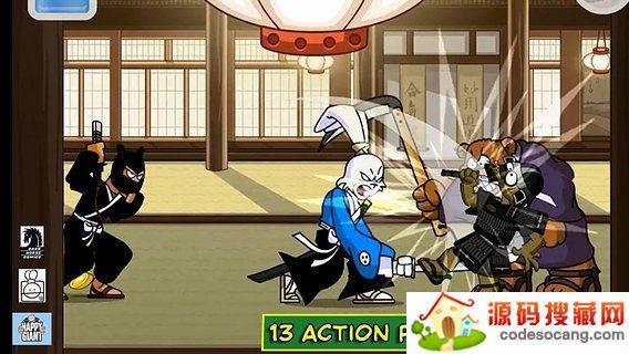暴力武士兔是一款横版卷轴动作游戏,拥有经典的杀怪、过关设定。每个关卡都有一个大BOSS,击败他才能在地图里继续走下去。游戏的操控符合触屏手机,玩家使用左侧虚拟摇杆移动和跳跃,使用右侧按钮发起重击和轻击。