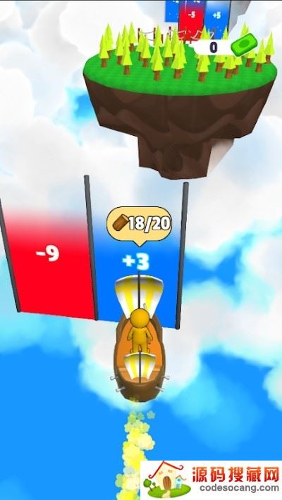 2、登上飞船后左右滑动屏幕躲避减法通道,到达下一个岛屿继续砍树造船直到终点。