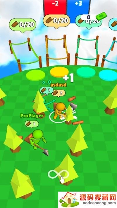 这天空悬浮的小岛上长满了树木,你和对手同时开始在岛上砍树,并用收集到的木材建造飞船,