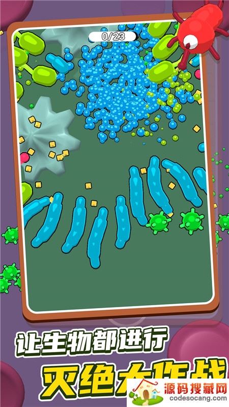 3、各种病毒都将出现,你要快速完成吞噬,让细胞拥有足够的吞噬能力,完成所有挑战。