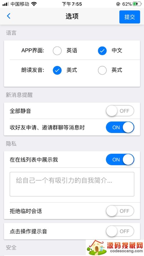 2、全英文聊天和社交环境。要发送的消息如果不是英文,会被自动翻译为英文发送,支持语音识别、同声传译;