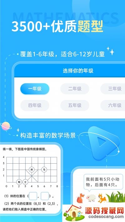 6.教材大纲同步:紧贴学校教材包括100以内数字加减法、10以内乘除法、图形与方位与比较大小等