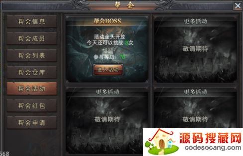 1.每天都可以挑战帮会BOSS,可以获得装备和其他材料奖励