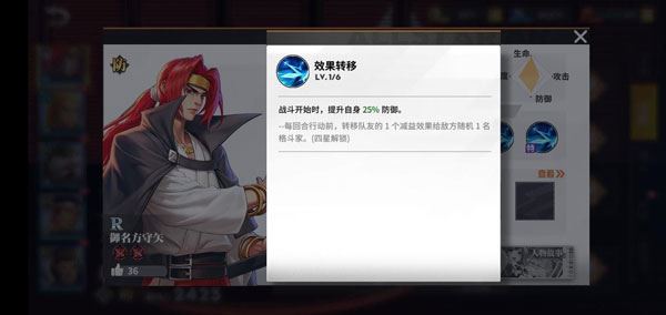 (5)特质——效果转移:战斗开始提升一定防御力。