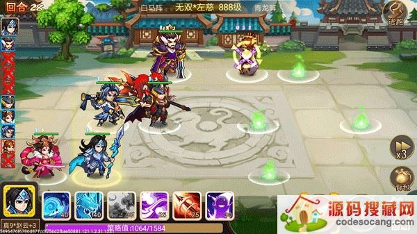 如图,白马阵,要求30阶,赵云要求四星加9万速,怎么达到呢?那就是用夜照玉狮子加白虎枪,智力马加的速度很高,所以可以让赵云先手,其他人要求都是5万速,这样才能在赵云开大后全员达到先手,然后用控制策略:冰龙加封技(可能有人脸黑,没有貂蝉),先控住法师,再控其他的人物,留一个单体的,问题不大。