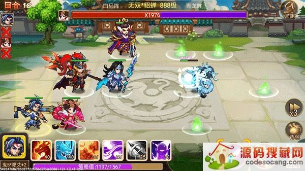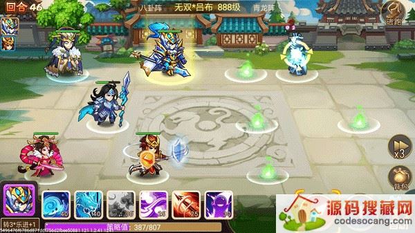 第三回合:现在已经干掉几个小兵或吕布了吧,再接着控,直到谋士前的小兵死,然后乐进放大冻住谋士,这样就比较好控。