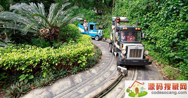 火箭过山车一十环过山车一龙卷风暴一摩托过山车一椰林餐厅+欢乐嘉年华一梦幻转马一欢乐跳跳→欢乐剧场《幻影魔力》表演→垂直过山车一超级大摆锤→纪念品。