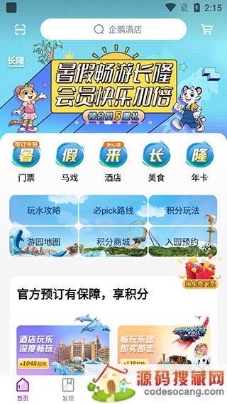 2、登录完成后,大家在首页找到购票,也可以先查看游玩攻略,做好游玩准备。