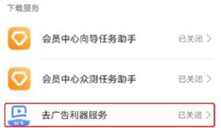 5、打开【去广告利器服务】开关。