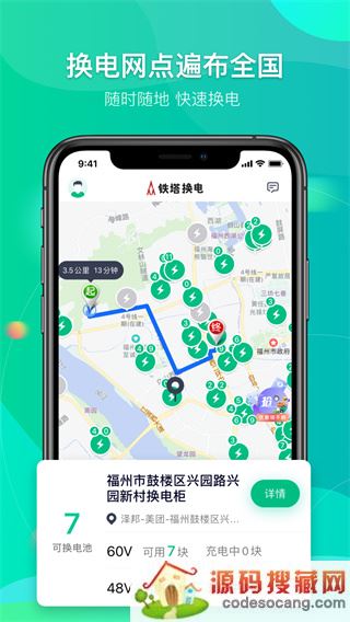 3、附近换电网点信息一目了然,打开手机定位立马呈现给你;
