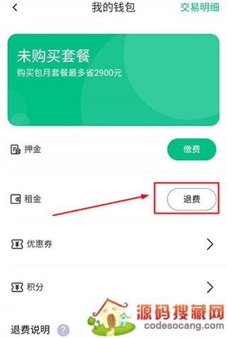 2、然后可以看到租金的功能选项右边的“退费”的功能,点击退费,通过申请即可。
