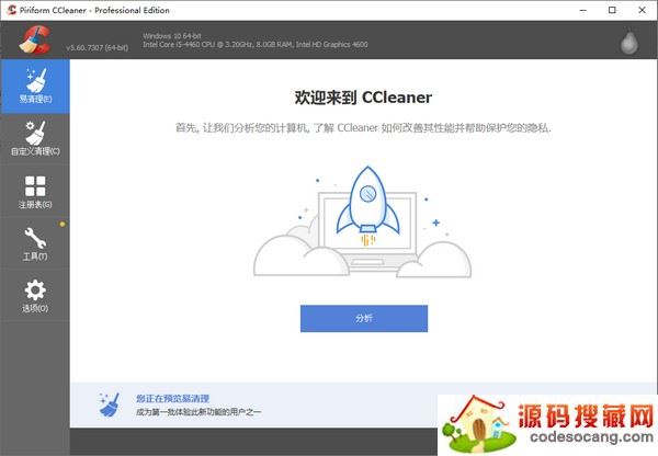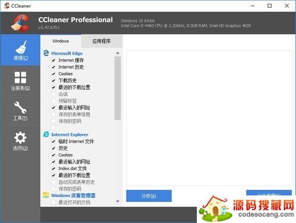 1、开启CCleaner,在最左边点一下挑选“清除”作用。在这里作用中,能够各自从Windows内置文档和别的应用软件正下方的目录中启用必须清除的新项目,随后点一下正下方的“剖析”按键,将清除的内容整理出来。