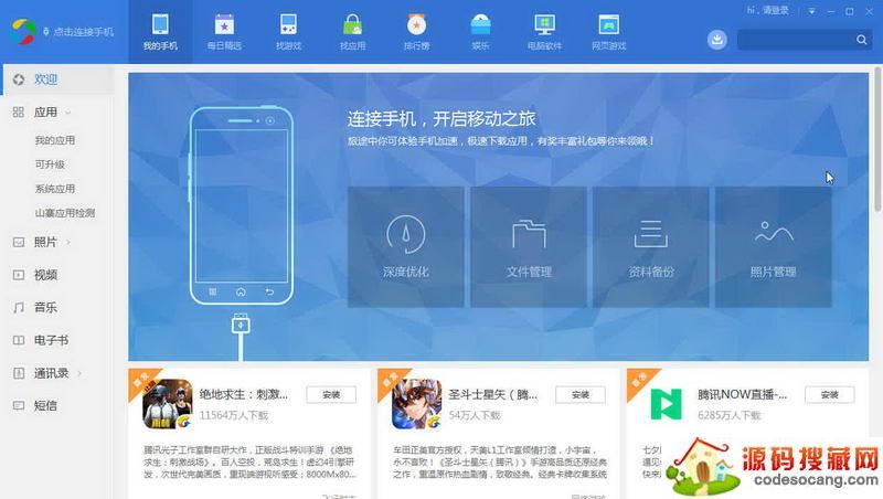 应用宝是一款智能手机的PC端管理客户端。将应用助手安装到您的PC上,然后可以选择数据线或WIFI方式将手机连接至PC,您就可以通过它轻松实现短信收发、通讯录管理、应用管理、音乐管理、视频管理、照片管理,资料备份等。另外更有海量的手机应用、游戏免费资源供您随心下载。