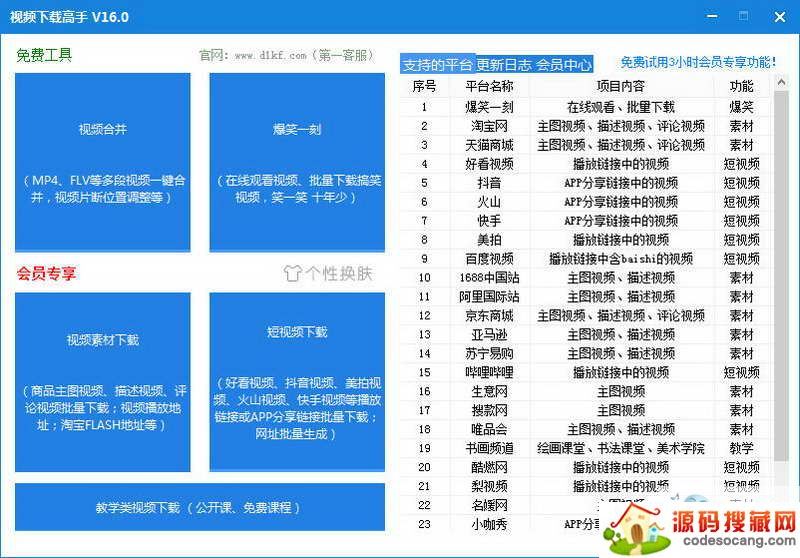 【视频下载高手】是一款专业下载视频素材的软件,可以一键下载淘宝、天猫的主图视频及详情描述页视频,还可以对多段flv视频进行快速合并等功能。软件永久免费使用,是电商必备的辅助工具之一。
