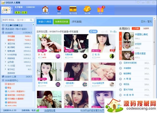 点一下社区服务平台左侧实际操作文件目录,挑选9158十人房,发生“市场销售会员专区”“缘分天空”“网通电信会员专区”“大家族大约”“歌曲影视制作”5县市。选中某一区后,右侧主页面发生房间,选定进到房间,便可以进到9158十人房。